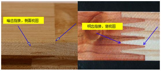 这个松木指接板,就是板条两端做出参差的齿(这个板是暗齿的,表面看不见齿),互相扣住,然后用少量的胶把它们粘合起来。用胶比直拼板要多一点儿,但是现在都比较注意环保了,所以也都是环保的,是可以用的,只是美观性差一点儿,胜在价格优势。