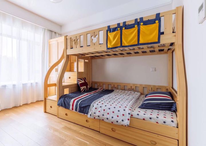 其中,松木用得最多,不那么硬,用来做儿童房的家具,床、衣柜、书桌都很合适,另外还有很多用来做榻榻米的。