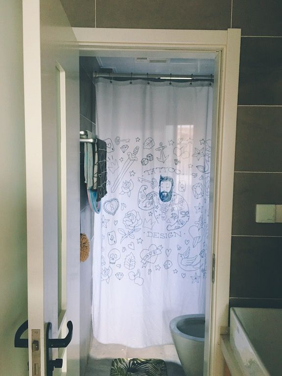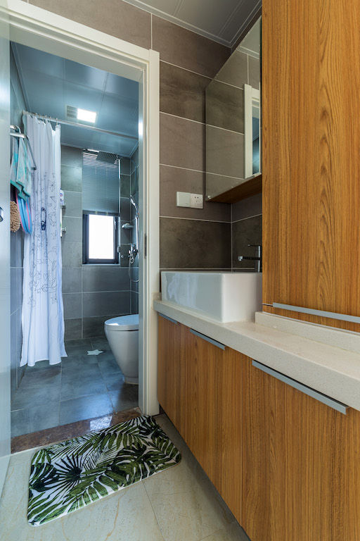 没有做玻璃门的淋浴室,感觉太麻烦,一个小浴帘就够了。