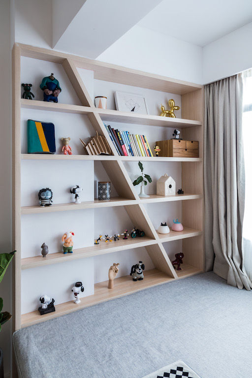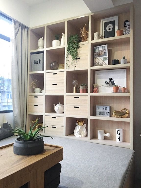 榻榻米两头的柜子,可以放书,也可以放点儿自己的小玩意,也曾担心过开放式书柜落灰的问题,但从实际的使用情况来看,如果你不是有严重洁癖的话,半个月到一个月用抹布擦一次就ok,用时不到十分钟。