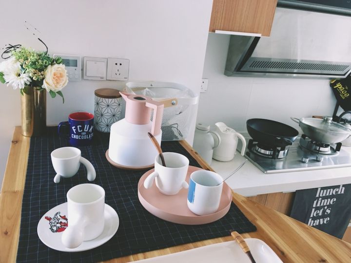 看得见的用品既要实用,也要美观。电饭煲小米,电热水壶muji,瓶瓶罐罐来自宜家。