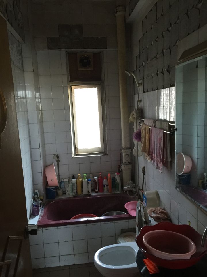 原来的卫生间,洗漱台马桶浴缸都挤在一起,下水管也没做任何的处理,就直接露在外面。