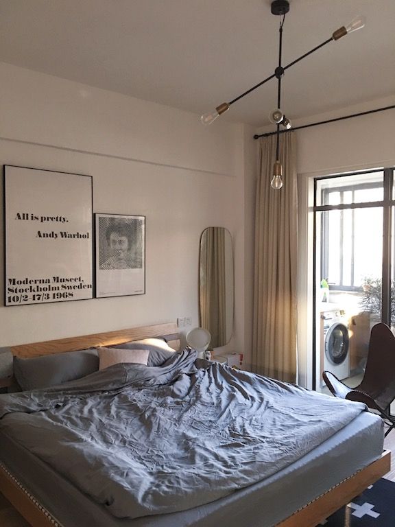 housedoctor五头吊灯,形式感很强,让卧室有了重点,只是铺床时一不小心会碰到。