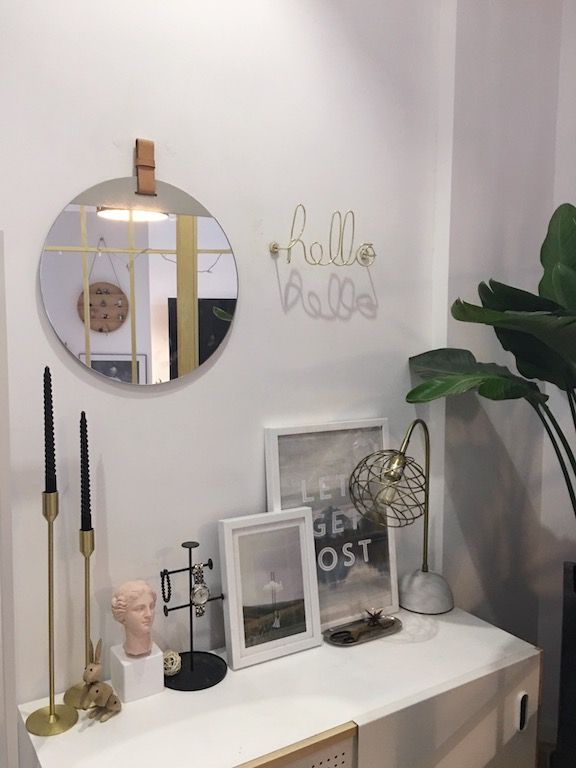 镜子上的皮带很有质感,旁边是hello的造型字,还可以挂点儿小东西。