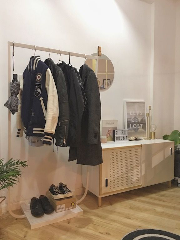 刚开始装修的时候,喜欢日式的调调,所以玄关多是木色的家具,装着装着,发现北欧风也挺赞的,就把玄关的家具都换成了白色调。