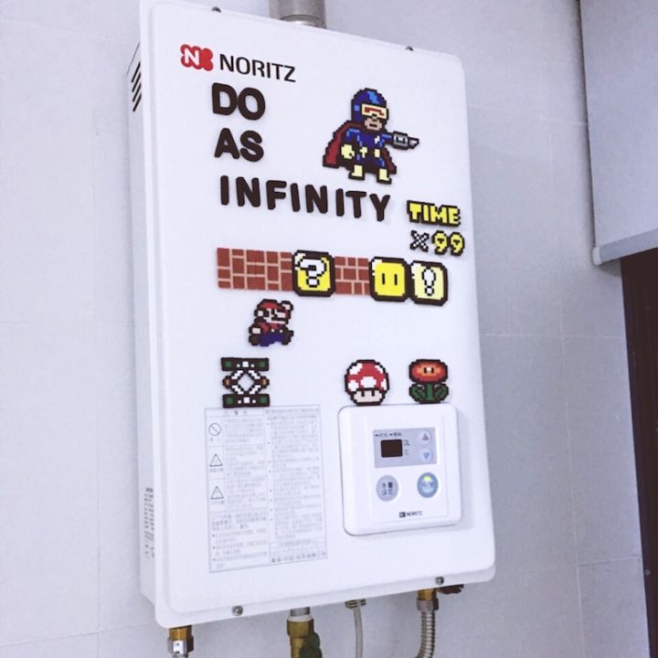 热水器上的标签都撕掉了,换上了卡通风格的冰箱贴。