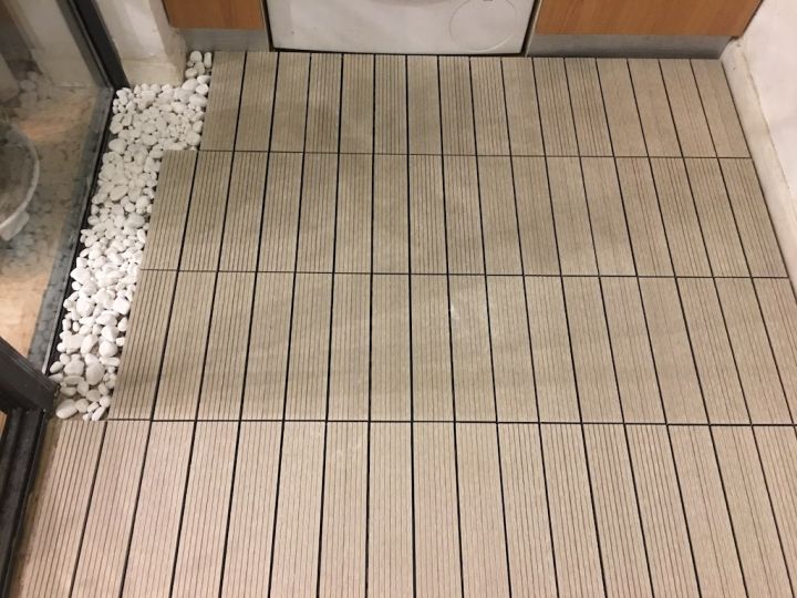 另外原本阳台安装的是瓷砖,颜色很浅,一脏就特别明显,自己网购了塑木户外地板,安装过后,好多了。