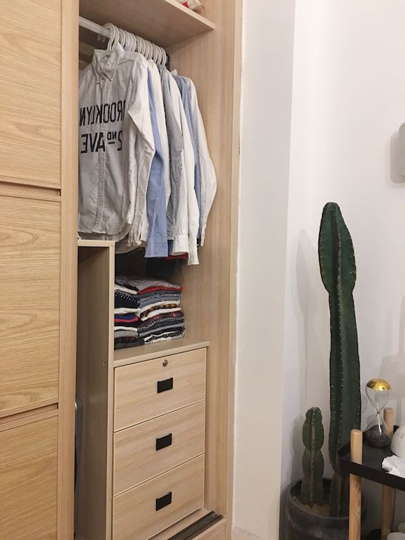 定制柜子的时候其实也费了不少心思,主要都在跟工人师傅斗智斗勇上了。本来自己已经跟工人师傅讲得很明白了,但一开始做出来的柜子,是这种样式的: