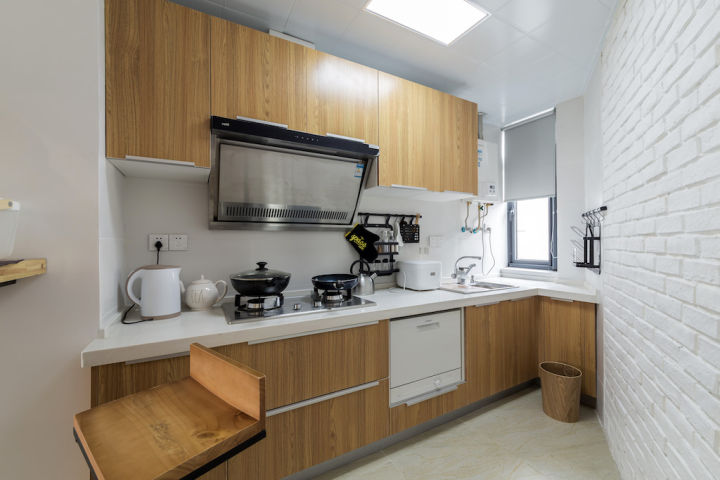 遇到这种小厨房,小客厅的房子,恰巧做饭也不多的话,开放式厨房绝对是你不二的选择。