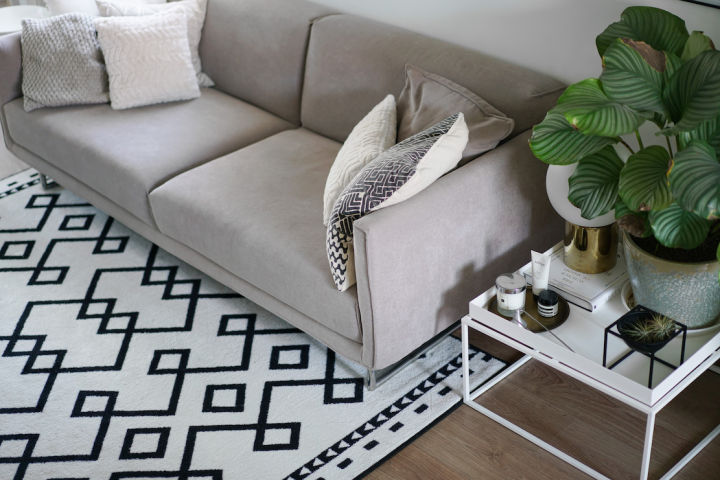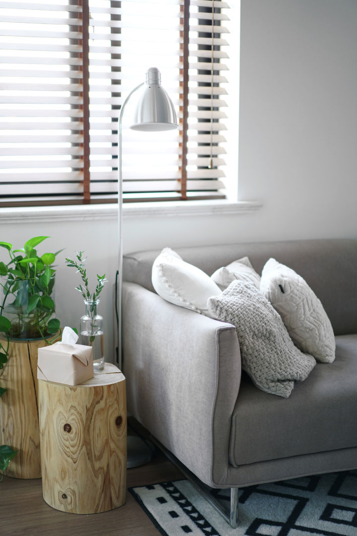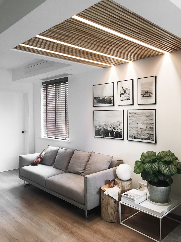 小进深的灰色沙发,可以跟水泥色的墙面搭配起来,而金属小细腿,视觉上会有扩大空间的感觉。
