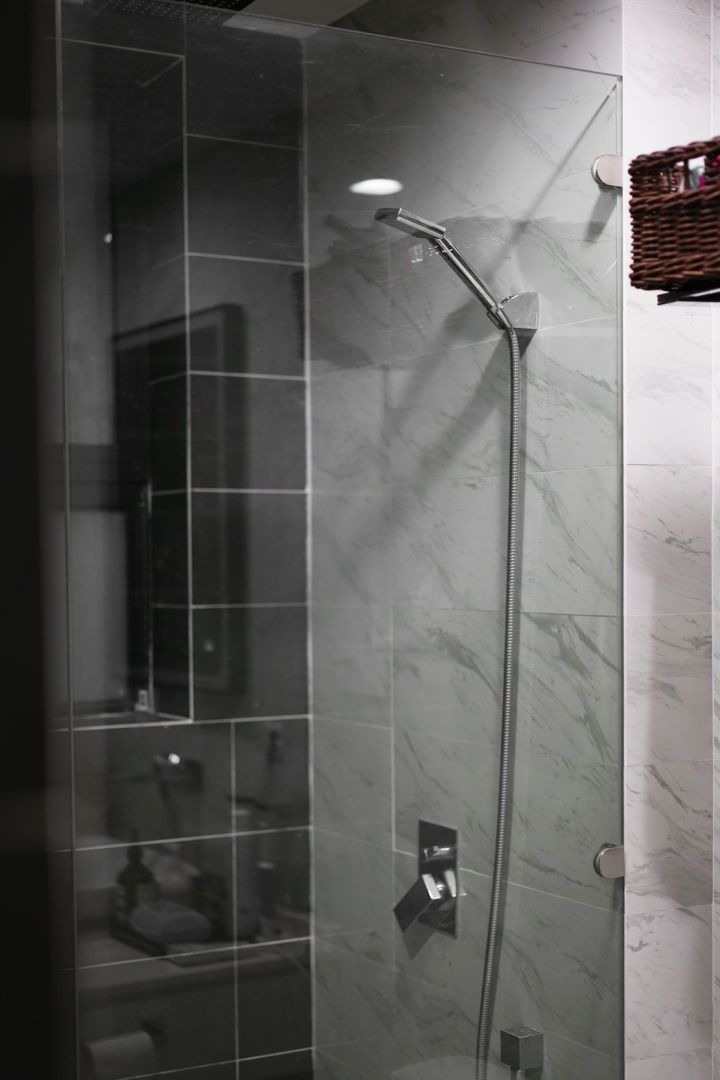 淋浴区,没有做麻烦的推拉门,各种卫生死角非常难打扫,只用了单块的玻璃。