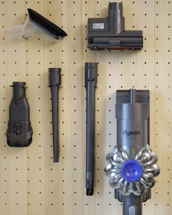 提到洞洞板,当然不能不提它的收纳能力了,不好搞的的戴森,一块洞洞板,就规规矩矩起来。