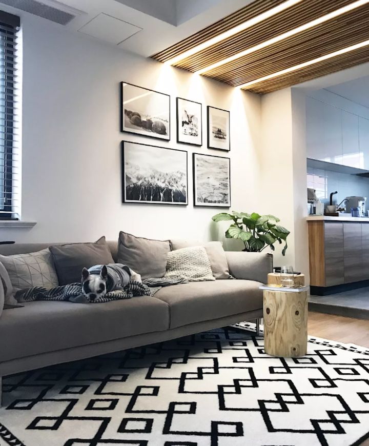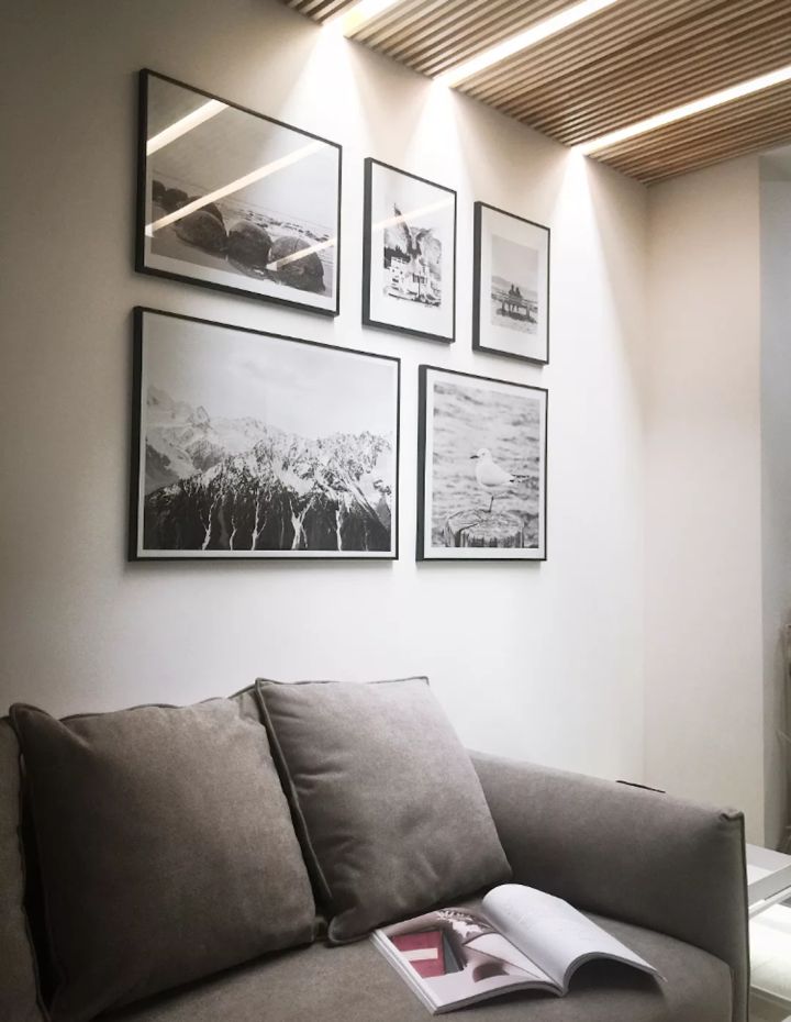 照片都是自己去新西兰玩的时候拍的,而且为了客厅色彩的统一,特意打印了黑白的照片。