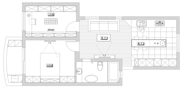 客厅已经尽可能在原户型的基础上扩大了,但空间仍然非常有限。如果客厅家具选择不合理的话,这个客厅,还是会有拥堵的感觉。