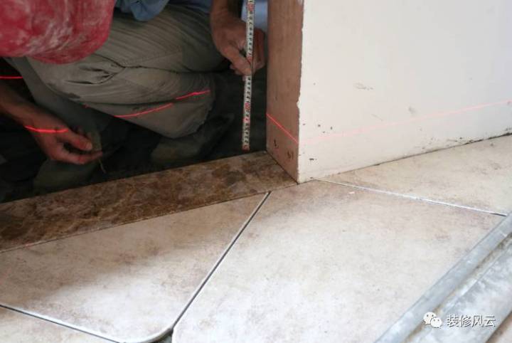 上面说到,瓷砖跟瓷砖之间,如果使用通铺,为了好看,需要对缝,如果有个过门石做过渡,施工就会方便很多。