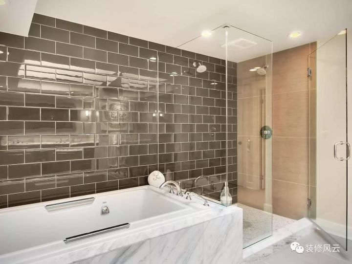 全瓷砖和瓷砖+地板的方式,就有一些不同了。