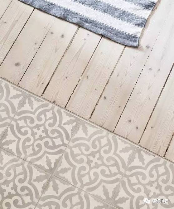 厨卫一般贴瓷砖,其他空间的地面,一般也就三种玩法:全瓷砖,瓷砖+木地板,全地板。