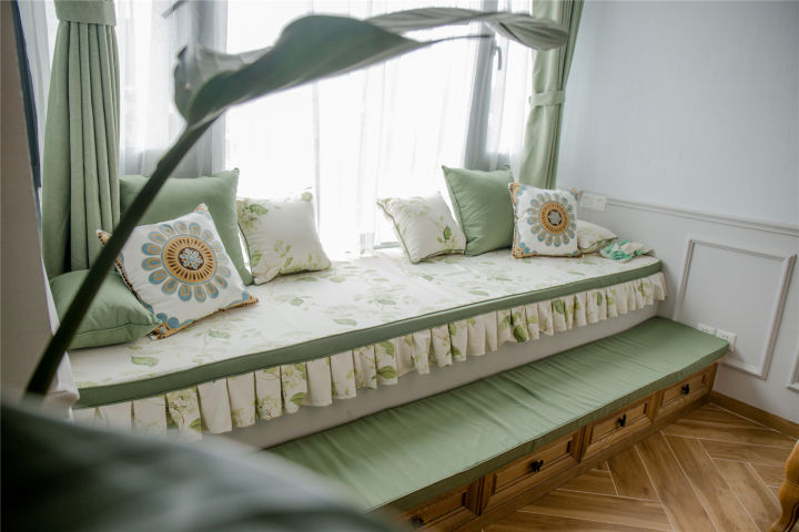 那么,客人来了怎么坐?没关系,有飘窗。直接铺海绵坐垫,还省了钱不用做窗台石(反正做了也看不见,而且大理石非常贵)。