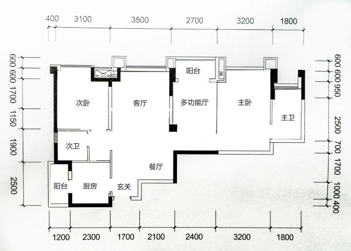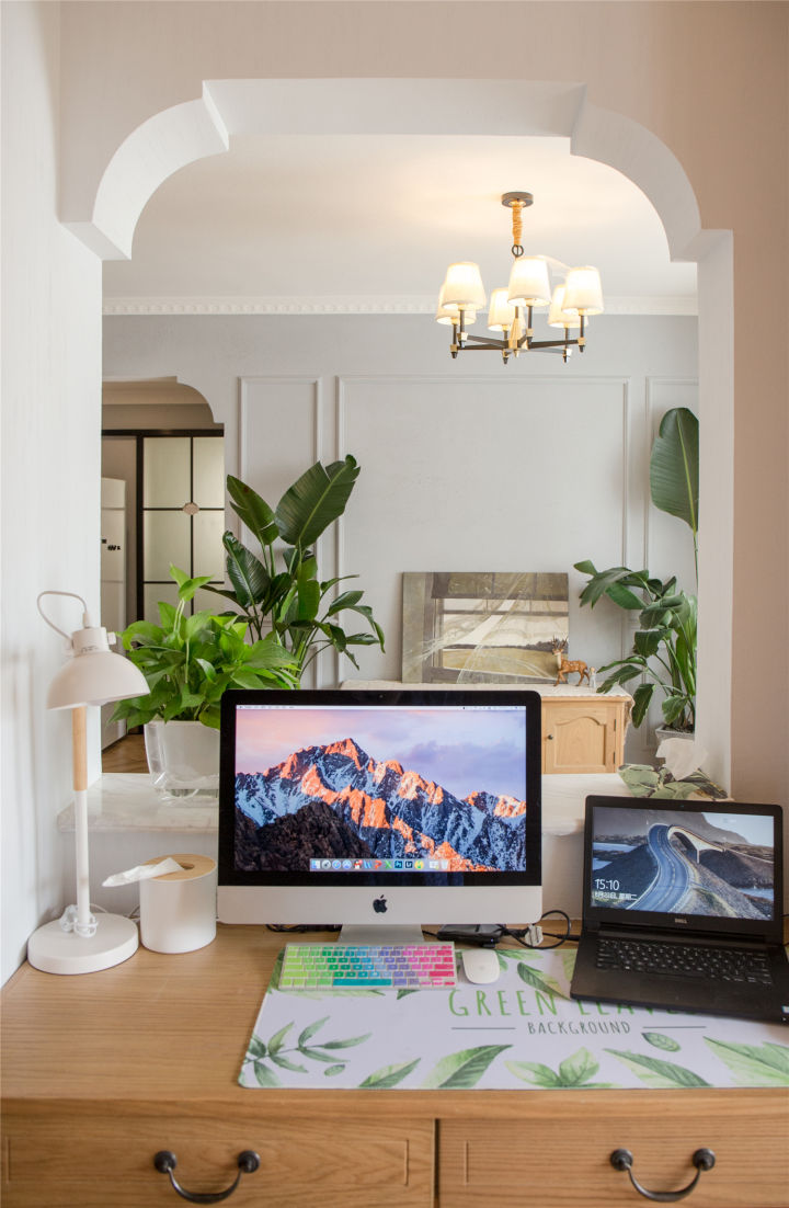 客厅后面本来是一个小卧室,形状狭长,除了儿童床什么都放不下。干脆把能打的墙都打了,结合打不掉的承重墙和承重柱,砌了一个拱形窗洞。