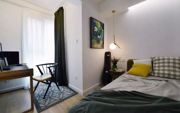 在没有书房的户型中,有时会把书桌放在卧室一角,开一扇室内窗,扩大视野,阅读办公不压抑。