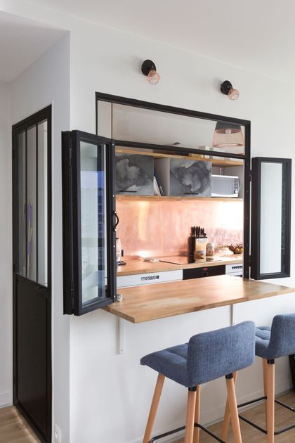 刷白色、选择浅色地板、选择低矮的家具、适当拆墙打通空间的办法就不说了,说一个相对少见的处理方式:室内窗。