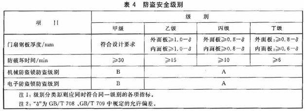 在国标GB17565-2007《防盗安全门通用技术条件》中,按照安全等级将防盗门分为甲、乙、丙、丁4个等级,从甲到丁,安全性能逐步降低。