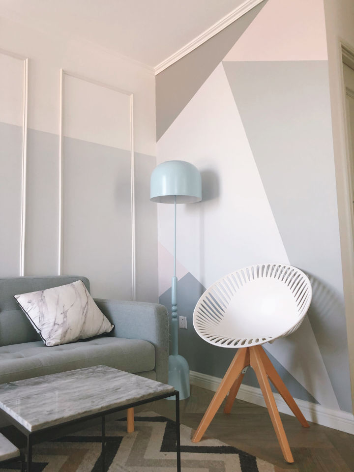 其实,如果希望墙上有点色彩,不想要大白墙空落落,局部刷漆也是个选择,简单好操作,比如这种简约几何形状的设计,在北欧风格中一直很受欢迎: