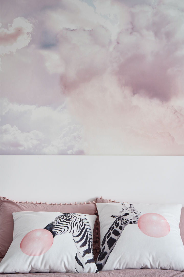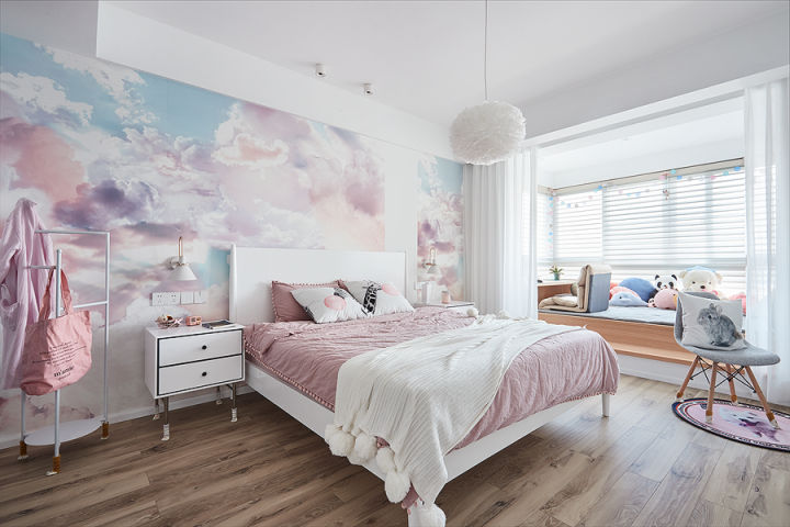▲屋主晓熊的单人卧室,选了少女风格的粉色系,墙纸和软装的风格保持了一致性