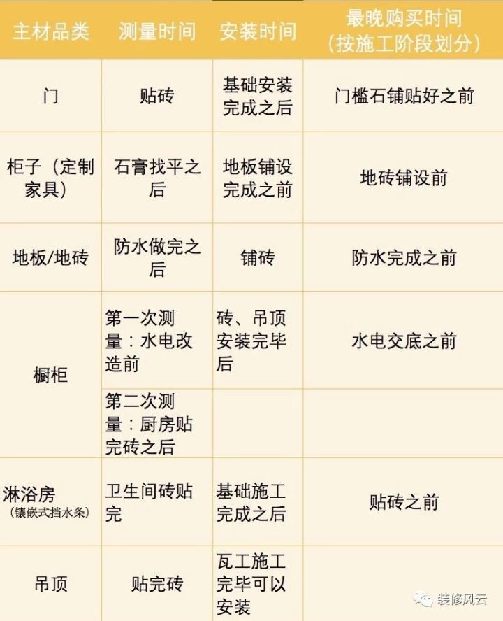 接下来,我们就一个一个的去看看,主材的购买顺序,要怎么跟施工的顺序无缝衔接。