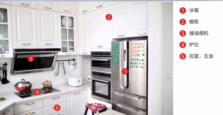 比如抽油烟机、炉灶,都跟橱柜台面的开槽相关,所以这些东西,在定橱柜的时候,就应该一起考虑。