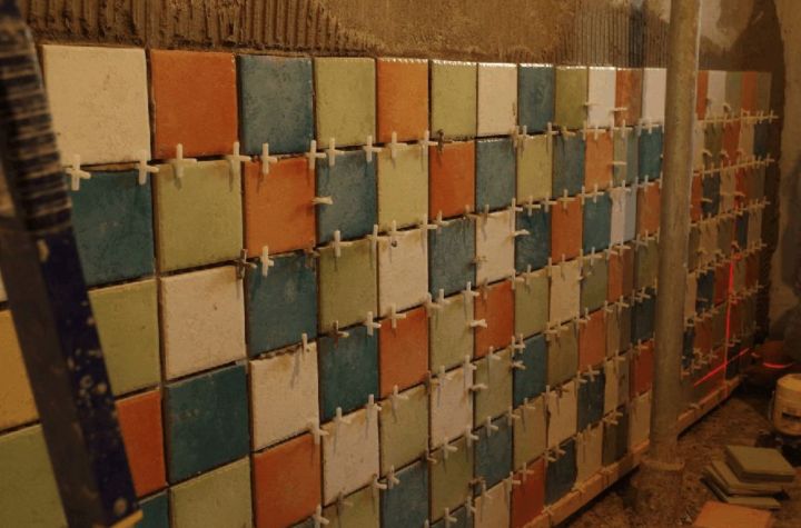 地砖上墙不要用水泥砂浆,地砖的吸水率低,又比普通墙砖重很多,用传统的水泥砂浆的方式,是很难把地砖贴上墙的。