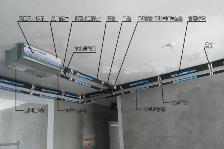 还有的管道焊接有问题,可能当时管道测试没发现,但是一段时间后小则漏氟,大则制冷功能受损、只能扒了天花板重来。甚至有错把空调室外机安装在室内阳台的。