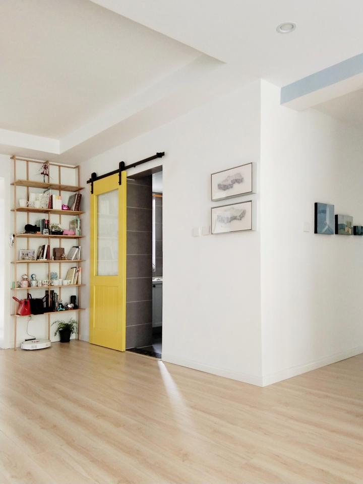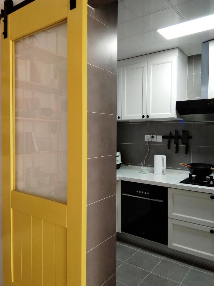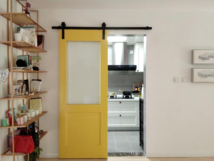 谷仓门嵌玻璃增加采光,后来才发现厨基本不关门,连炒菜都很少关上,有油烟机足够了。