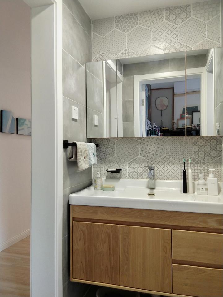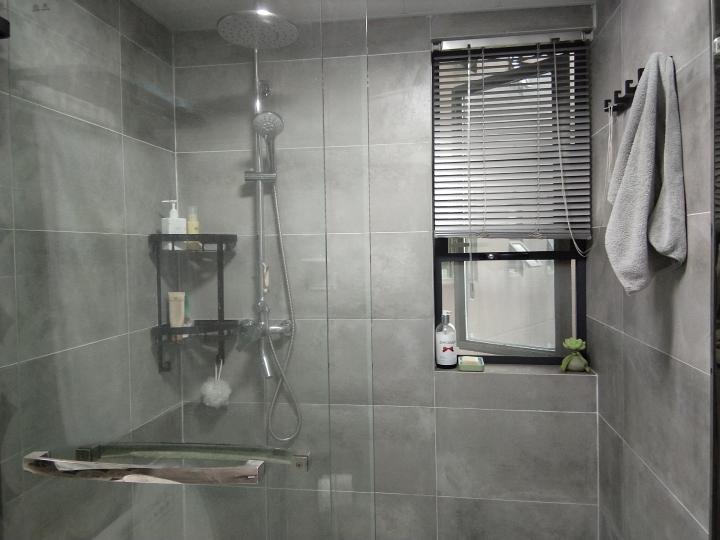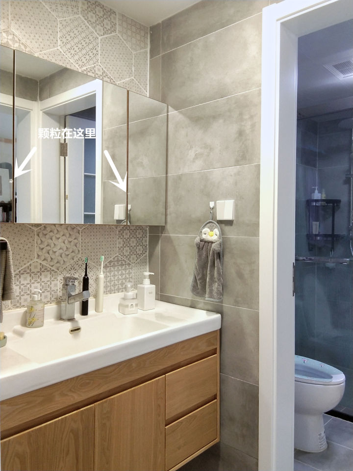 湿区是常见的灰色现代风格,水泥砖是孙胖选的,真的非常非常耐脏。