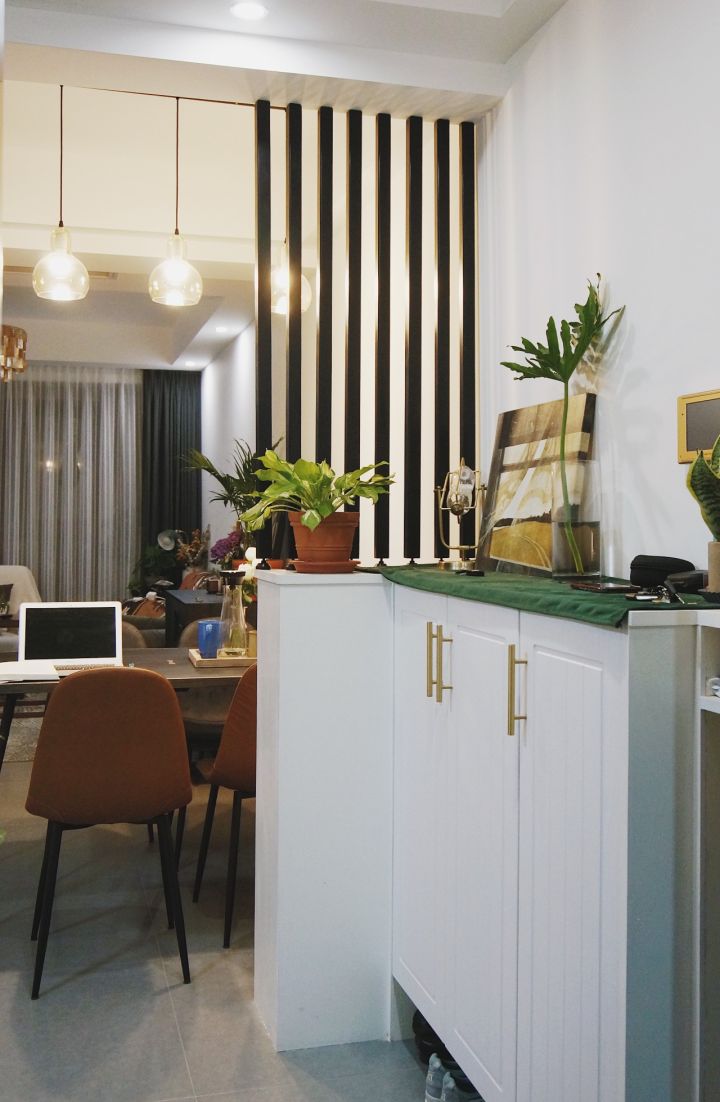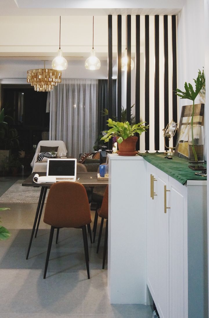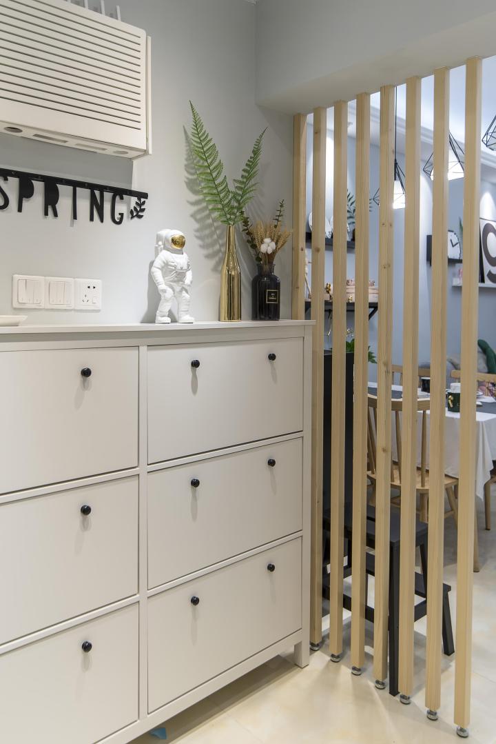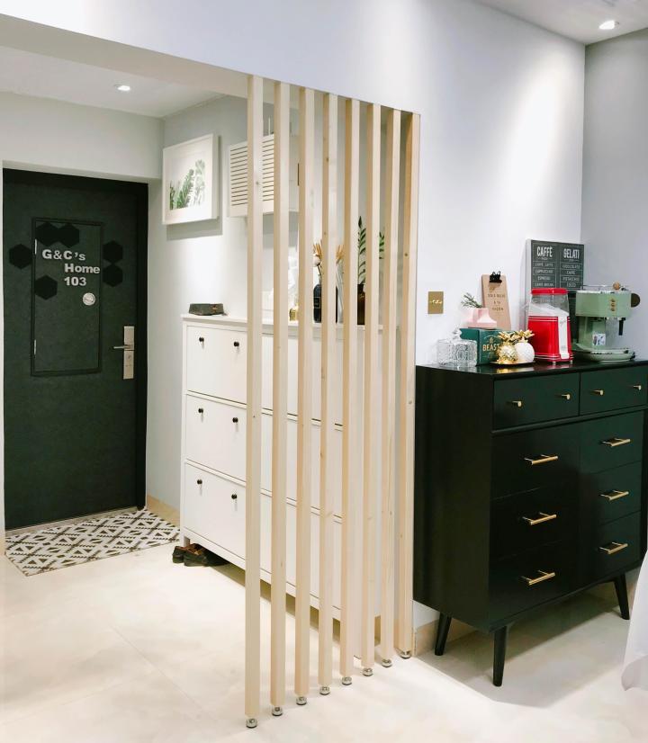 玄关隔断什么样的好? 2019-12-27 装小蜜 玄关隔断 分享一种木条隔断。在家庭中比较好实现,装修完了也能加的: 因为进门直面客厅,家里老人觉得一眼看到底不好,于是在玄关和客厅之间加了最简单的隔断,松木原木,和家具的原木风格比较协调。 隔断底部是螺旋固定,像拧螺丝那样可以伸缩,不用破坏瓷砖,拆装都很方便,上头就是自然顶住的,也很牢固。 从客厅看的效果: 类似的,还可以让隔断顶着鞋柜: 鞋柜定制成L型的,在转角上固定隔断。这里给隔断上了黑漆,也是为了和自家风格搭配。 其实要是没什么特别的需求,或者在正对门的隔断底下放一个普通的小鞋柜,不做成转角式这么复(费)杂(钱),也是可行的。 Share