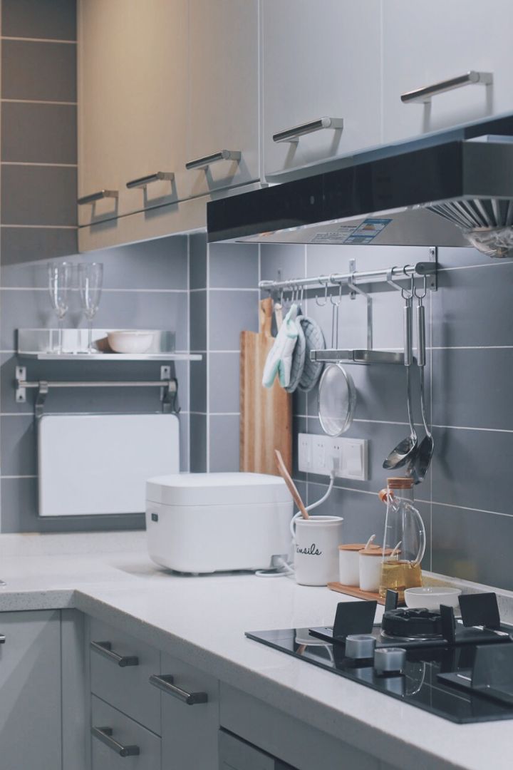 厨房是屋主在家里最喜欢的空间,自己画图设计橱柜功能、测量尺寸、挑选把手,重新设计改造实现了自己理想中的厨房。
