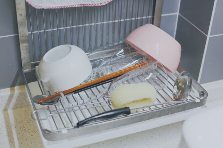在水槽右边做了一个折叠式的沥水篮,简单实用。