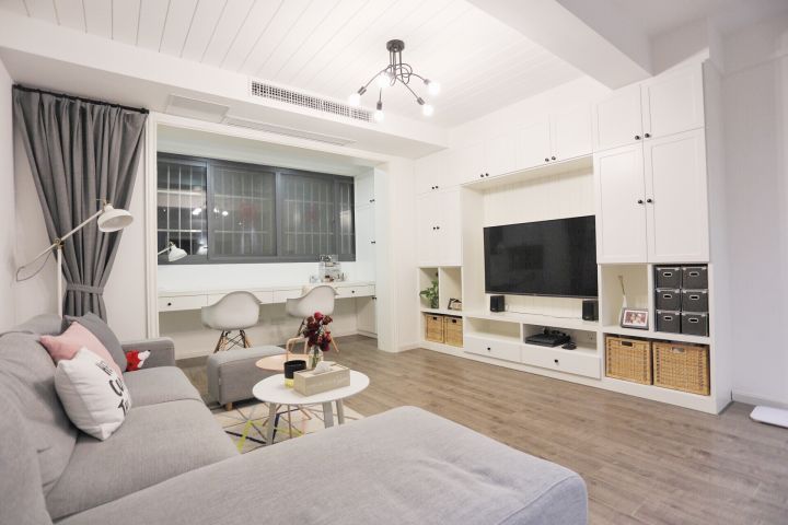 有人会担心大柜子会让客厅显得局促、不够清爽,其实利用色彩和外观造型带来的心理错觉来设计柜子,这些都不是问题。