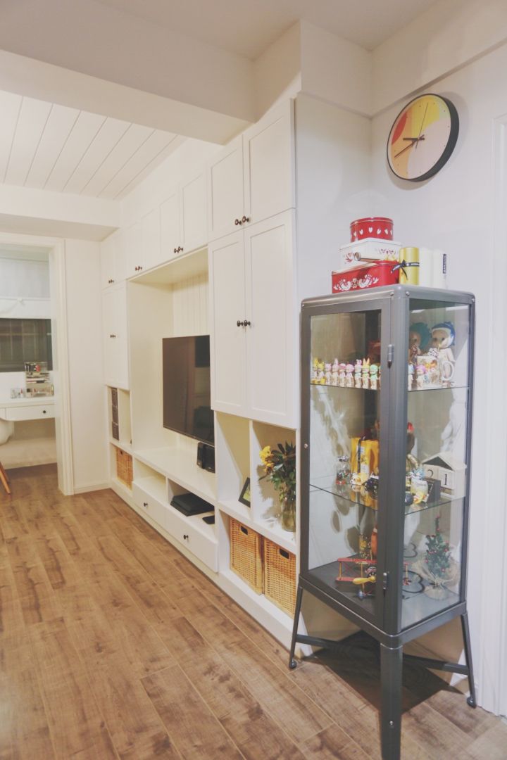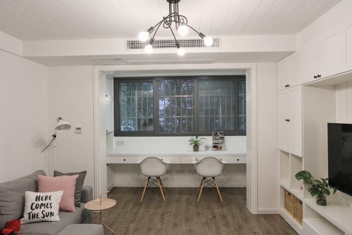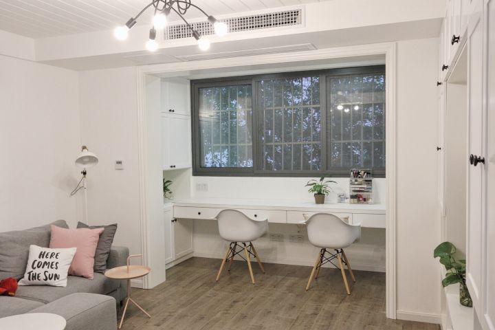 屋主本来想把阳台做成飘窗,不过问过了很多朋友,都说自己家飘窗沦为了堆杂物的地方。于是把阳台设计成了「书房」,两边做成高柜,放书。