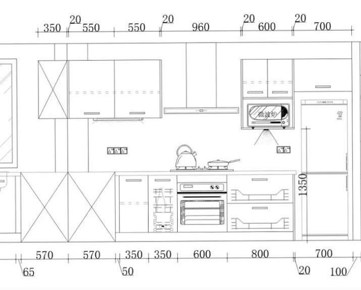 厨房一定是全屋对收纳要求最高的地方,需要一个超高效率的橱柜。设计如图: