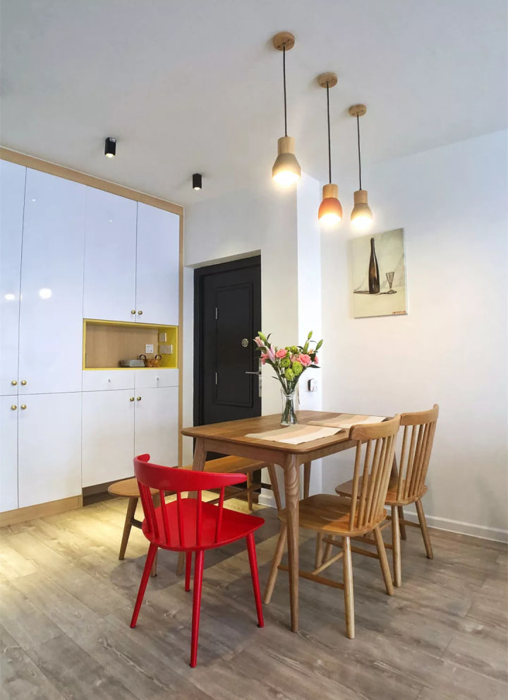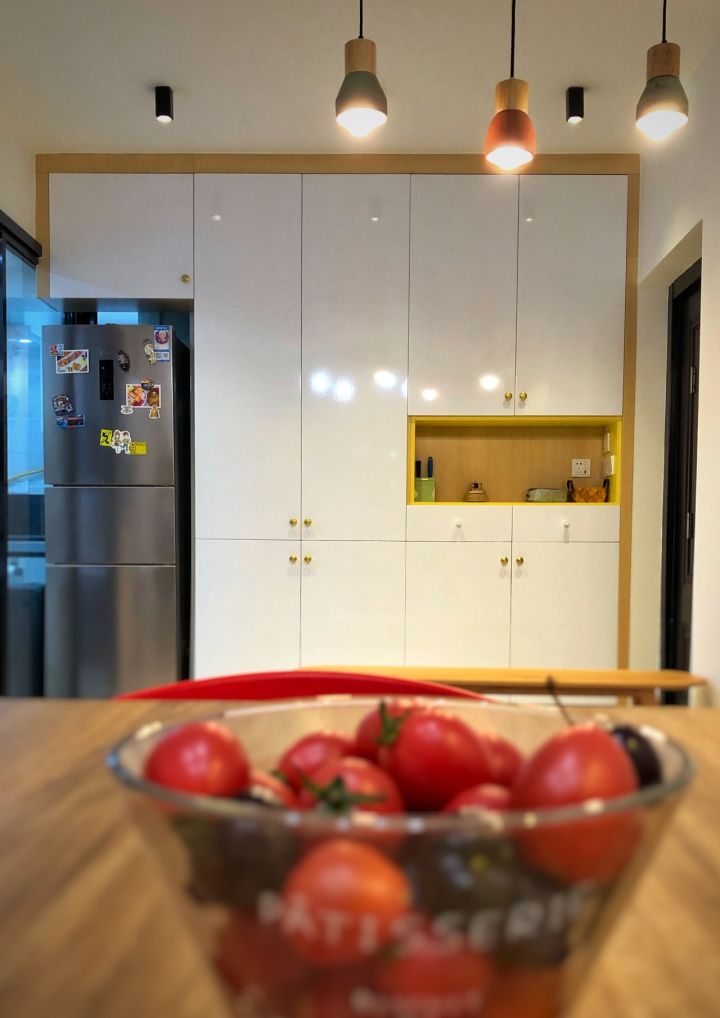 传菜窗前加了盏小吊灯,晚餐时间的家,最能让人感到温馨。