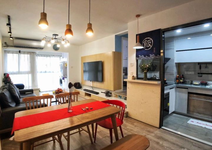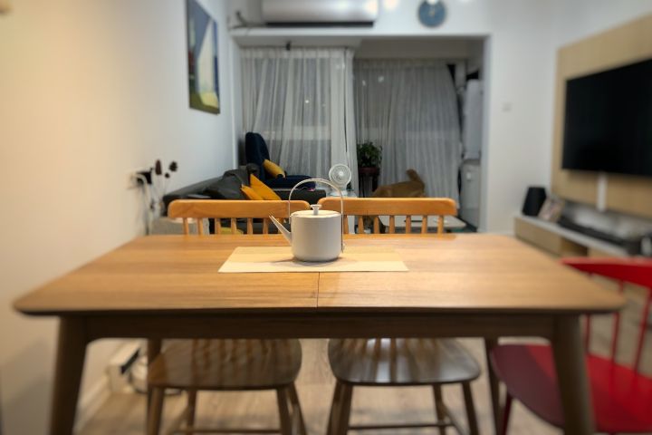 空间只够放个小餐桌,平时自己吃火锅够用了,来客人了怎么办?餐桌选可伸缩的,平时是1.2米,拉开后有1.6米长。