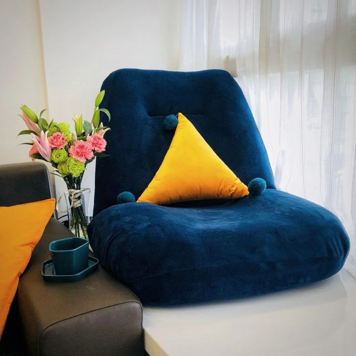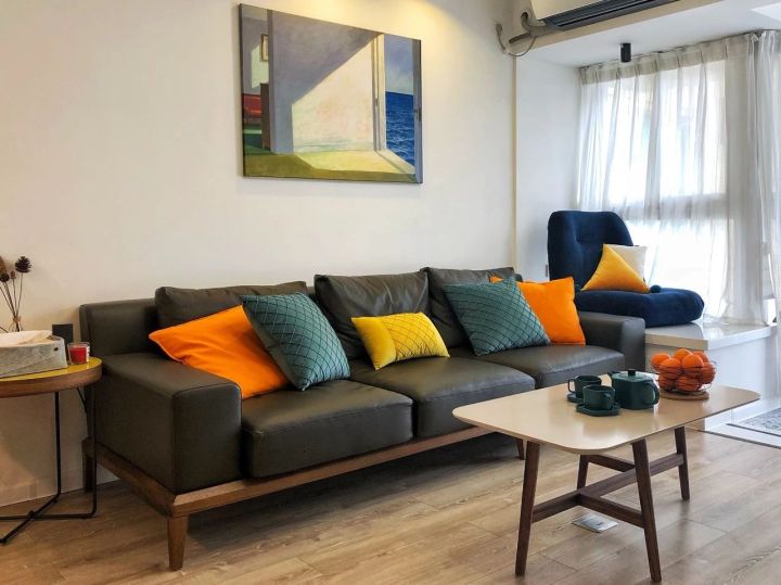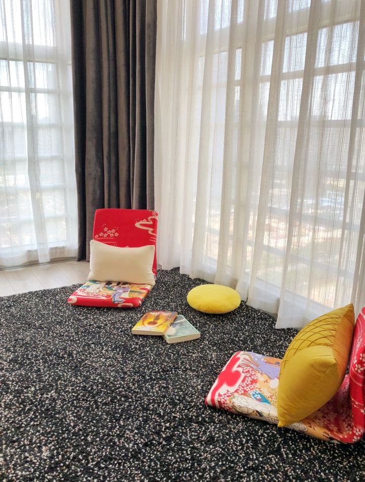 飘窗上搁着一只日式小沙发,深得“懒人”精髓,舒服、方便移动、还能展开变成平的。背后有它支撑,全屋地板随便坐。