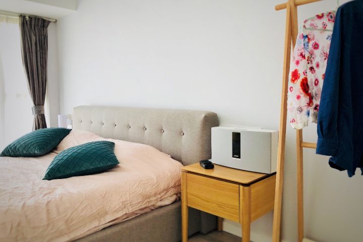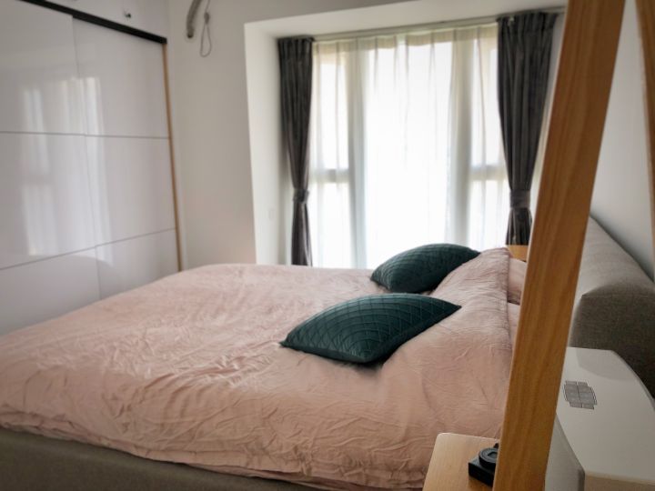 次卧为父母时刻准备着,看似床实际是榻榻米,按照榻榻米尺寸单买的软包床头。