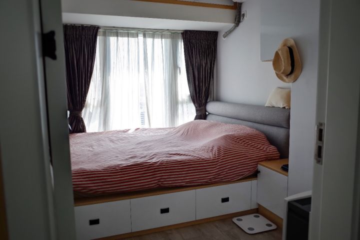 衣柜由于需要一定的深度,后来和床对调了位置,所以主卧实际与设计图稍有出入。