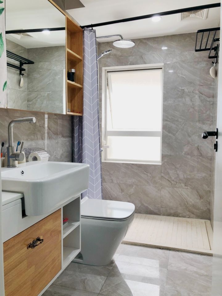 卫生间的窗户单独更换过,大角度外开窗,为了通风更好,玻璃选了磨砂的。
