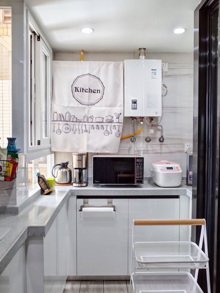 不到一米长的小吧台支撑着窗户,要是有朋友来家里做客,喜欢趴在窗前看主人做菜(霈梵:弄得人家还有点小紧张)。