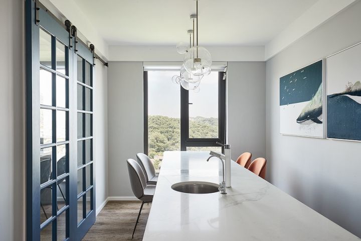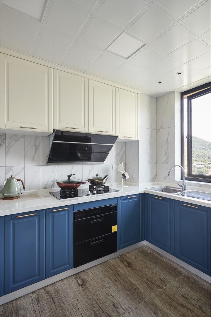 餐厨的主要点缀色彩是蓝色,热火朝天的地方用点冷色调,嗯,冷静冷静。