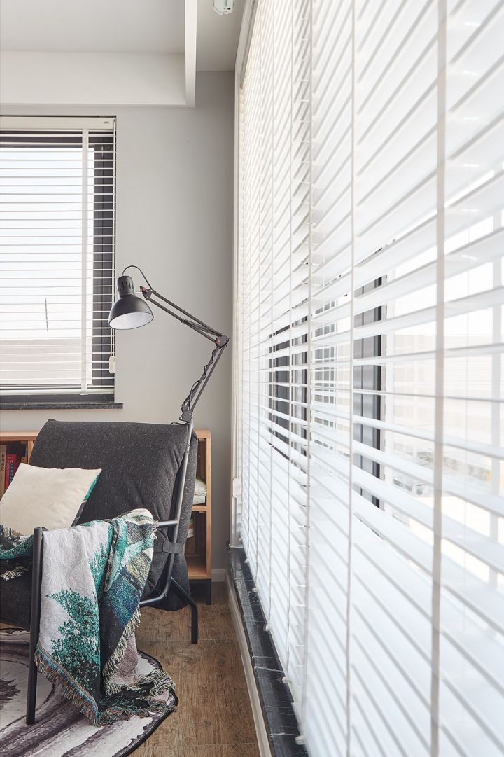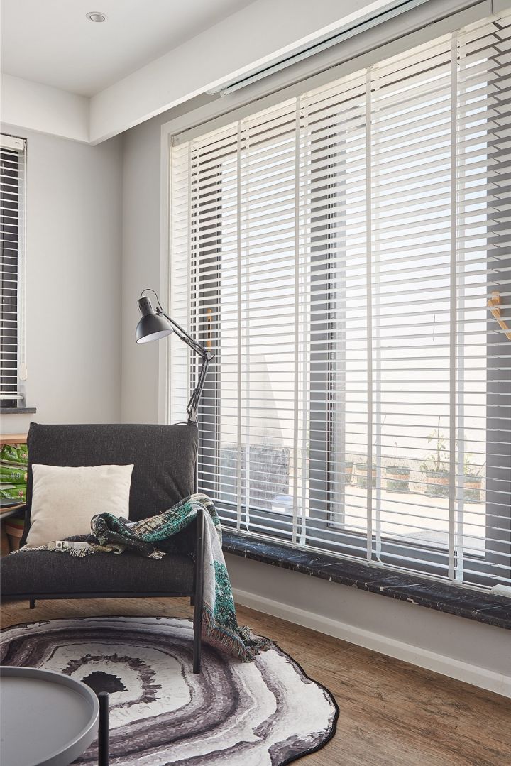 百叶后面看似是落地窗,其实是上露台的推拉门。