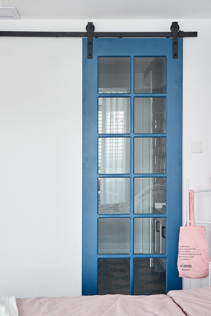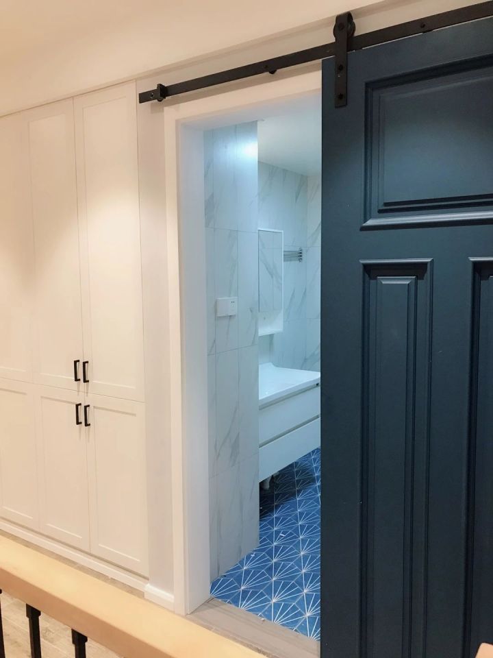 先介绍下主卧的大致格局——蓝色门后是卫生间,干湿分离,干区也是衣帽间。
